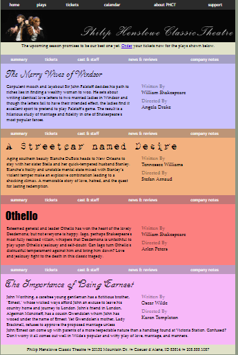 This is a portfolio of some of my class work in Web Frameworks. Using html, css, javascript, jquery, bootstrap and php to design responsive websites.