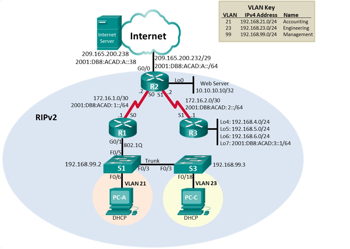 • RIPv2 Dynamic Routing